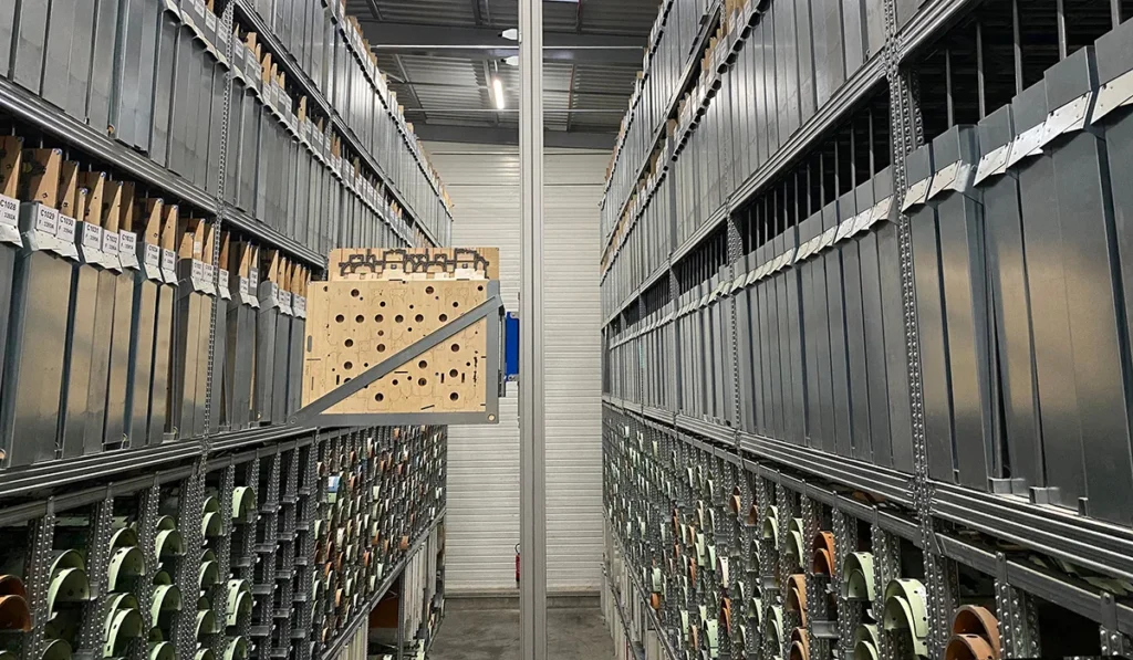 Stabile, übersichtliche und raumsparende Lagerung von Flachstanzformen. Perfekt für Wellpappenwerke und Verpackungsbetriebe, die Ordnung, Sicherheit und schnelle Werkzeugwechsel benötigen.